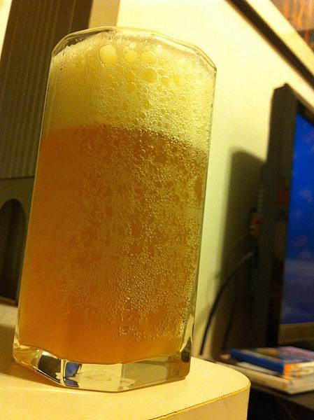 倒在杯子中,可以看到啤酒泡沫相當多,但消失也快